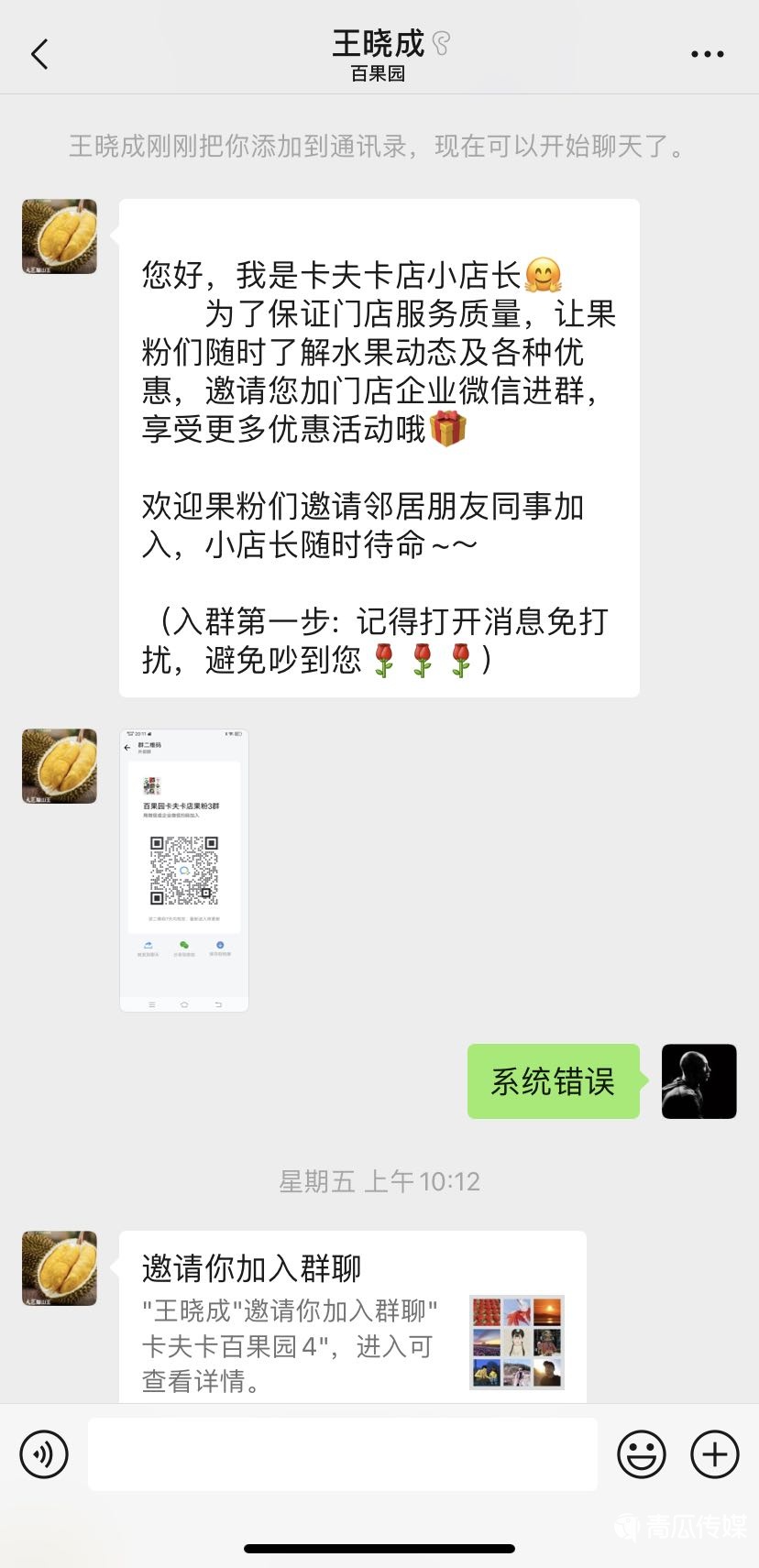 以2021年年初至今百果园的私域新动作 ——从个人微信运营体系迁移至企业微信运营体系为例,他们做了两件事: