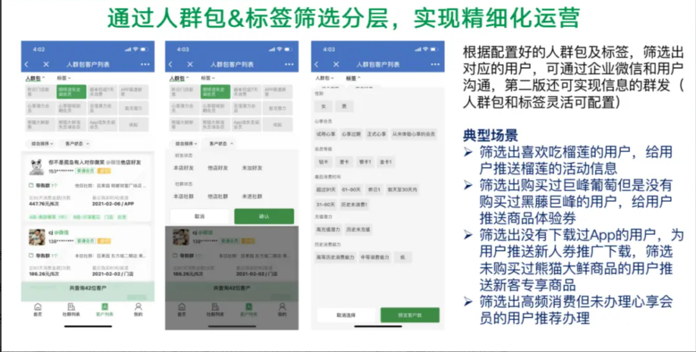 导流。通过门店引导、手动加好友等方式,截止到8月,已有企微社群用户 410 余万人;
