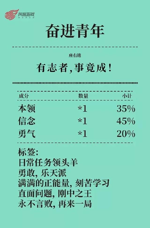 将青年特性分类,并以游戏的角色属性展现起来,趣味十足。不愧是搞游戏的。